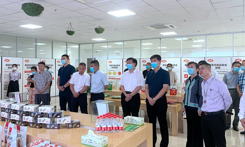 9月22日,国家市场监督管理总局食品安全抽检监测司副司长梁钢,食品安全抽检监测司二级巡视员郝明虹带队莅临PA旗舰厅美味调研。省市场监管局党组成员、副局长王建防,漯河市副市长周剑,漯河市市场监管局局长张炜,市市场监管局副局长马强华,市市场监管局食品生产监管科科长王文甫,开发区管委会副主任孙波,开发区市场监管分局局长王铁军等相关部门负责人陪同调研。调研组来到产品展示厅,在各生产车间动态实时监控大屏前,PA旗舰厅美味食品安全负责人就智慧监管平台向大家进行详细介绍,并现场演示远程监察、纠偏等功能。梁钢副司长针对食品安全防控相关措施与企业负责人进行交流并提出了指导意见。